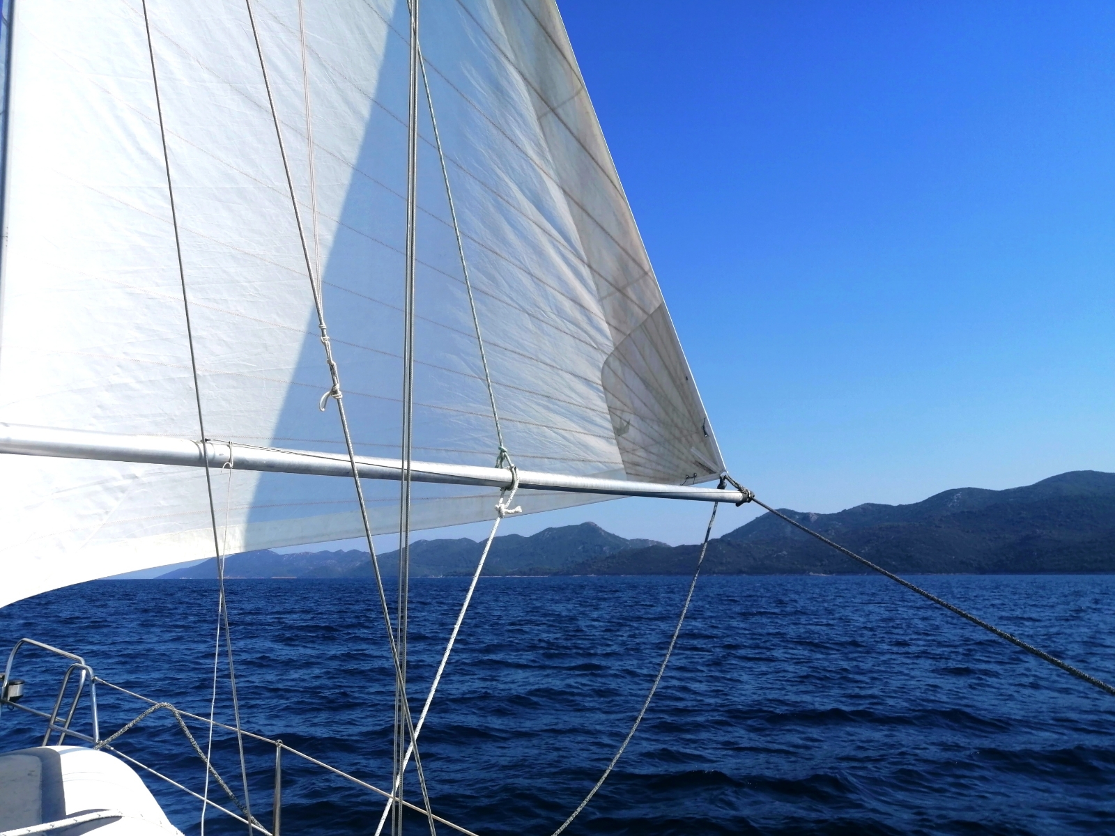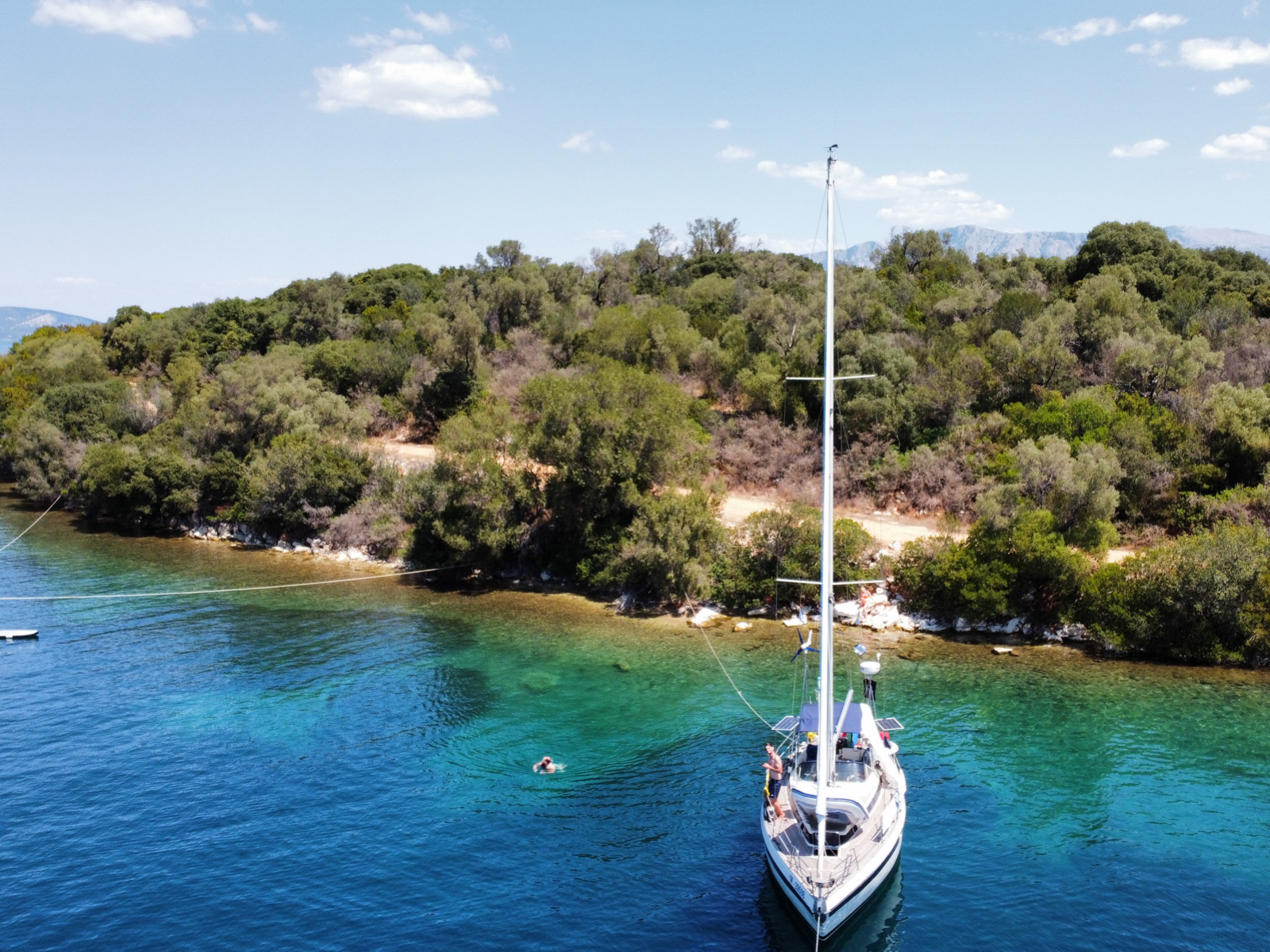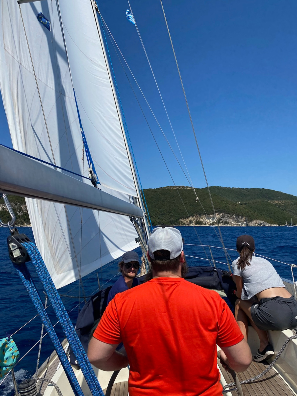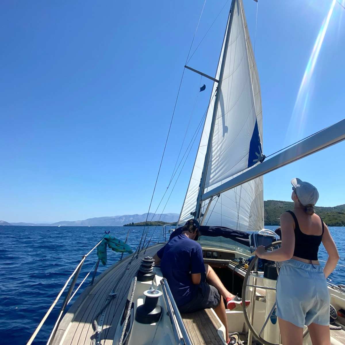 Auch die nächsten zwei Tage halten wir uns in den Buchten Ormos Sivota und Vliho auf, wobei die Ankerbedingungen nicht mehr so herausfordernd sind. Die heißen Nachmittage verbringen wir Schatten suchend an Deck oder im Wasser ohne Stress und mit sehr viel Gemütlichkeit. Für ein paar Stunden haben wir auch Glück mit dem Wind – vor der Bucht Vliho kreuzen wir gegen den Wind auf und Benni und ich wissen wieder, wieso wir Segelboote eigentlich so lieben.