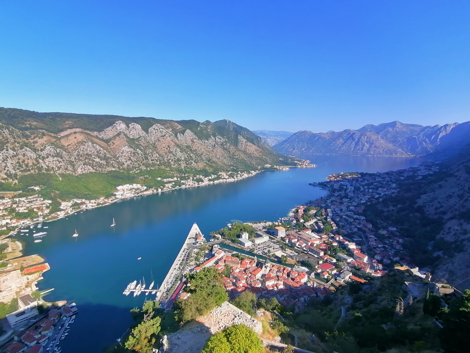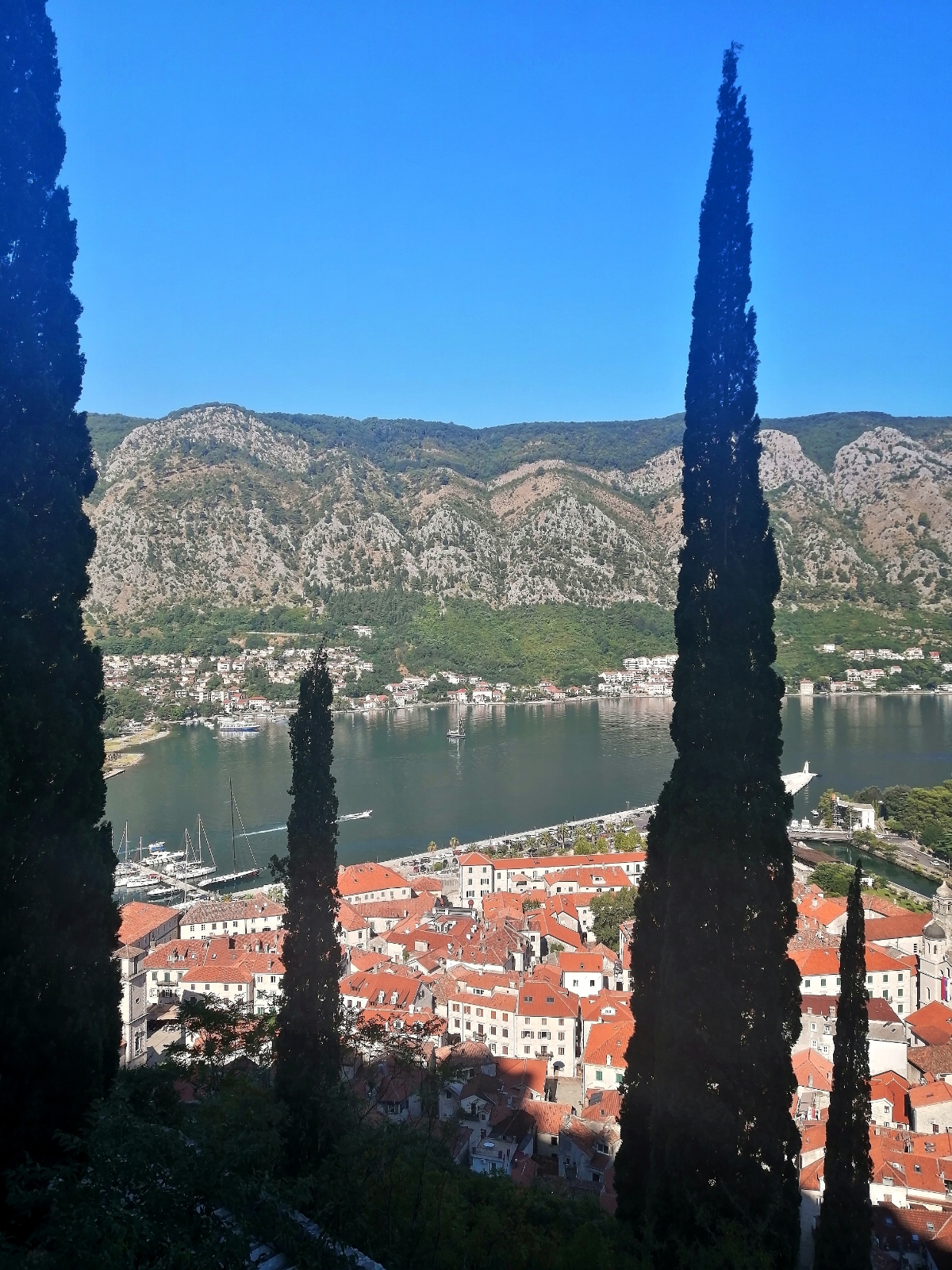 Kotor – sicher das Highlight in der nach dem ganz im Osten versteckten Städtchen benannten Bucht. Wir liegen an einem kleinen Steg vor beeindruckender Kulisse mit Blick auf die Festung in der Bergwand. Nach einem Tipp unserer Liegeplatznachbarn besteigen wir diese am nächsten Tag frühmorgens, ein schweißtreibender, aber lohnender Aufstieg, der sich über rund 1.400 Stufen erstreckt.