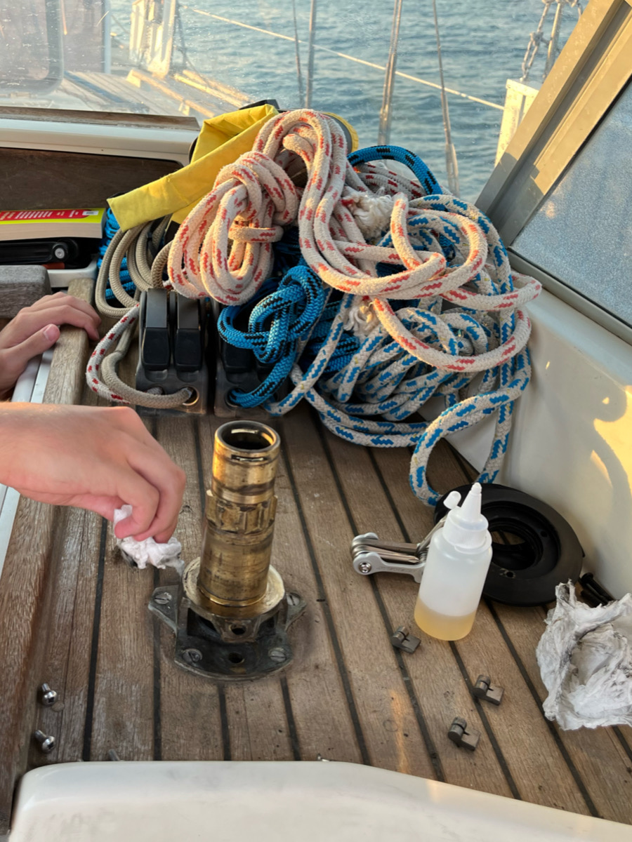 In Preveza stehen zwei große Themen an: Crewwechsel und Segelservice. Alex verlässt uns am Freitag Vormittag und Andi und Benni (der uns ziemlich genau vor einem Monat zum Schiff gebracht hat) reisen Samstag Vormittag an. Das Segelservice hab ich ein paar Tage zuvor per E-Mail ausgemacht, wovon vor Ort aber keiner wusste. Zudem war im Office der Segelmacher gar keiner, der von etwas wissen hätte können. Nach einem Anruf bei der ausgehängten Telefonnummer kann ich mit dem Zuständigen – Nikos – sprechen und frage ob ein Segelservice bis morgen oder übermorgen möglich wäre. Seine Reaktion: Impossible! Montag also – nagut. Zurück am Schiff wurschteln wir das Großsegel herunter und bringen es ins Office. Sogleich beginnt Nikos demonstrativ unser Segel mit einer großen Schere zu zerstören (Look how easy it is destroyed!). In unsere entsetzten Gesichter erklärt er uns, dass es schon sehr alt ist (stolze 31 Jahre – das wissen wir) und wohl nicht mehr länger als einen Monat zu leben hätte, wenn man nicht sofort grundlegende Reparaturen verrichte. Bange erwarten wir einen Kostenvoranschlag für die lebenserhaltenden Maßnahmen – der dann überraschenderweise deutlich unter dem klassischen Tausender liegt. Außerdem ist es doch possible die Arbeiten bereits am nächsten Tag abzuschließen. Das Segel liegt, Stand jetzt, gewartet und bezahlt am Schiff und wartet darauf wieder zum Einsatz zu kommen – die Spannung steigt.