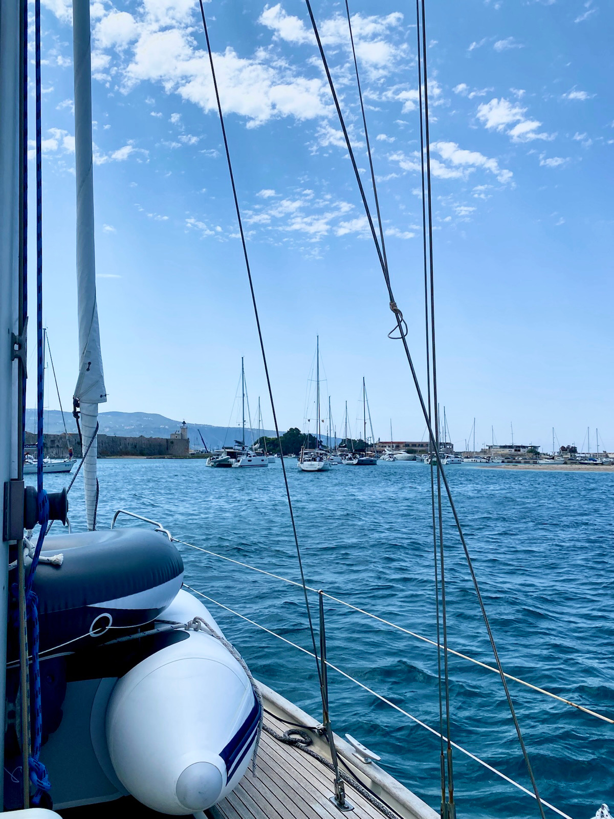 Von Bar in Montenegro aus starten wir unsere erste Überfahrt für dieses Jahr, und zwar nach Korfu. 180 Seemeilen und 38 Stunden später sollten wir gut durchgeschüttelt und müde auf der grünen Insel ankommen. Gleich beim Start vor Bar zu Sonnenaufgang erwartet uns ein recht gewaltiger Seegang mit Wellen bis zu 3 m und das auch noch genau von der Seite, während der Wind, allen Vorhersagen zum Trotz, genau von vorn kommt. Wir motoren also erst mal ein paar Stunden, bis der Wind dann doch dreht und wir bis Mitternacht recht stabil segeln können. Der Seegang bleibt ungemütlich. Bernhard und ich wechseln uns alle zwei Stunden ab. Alex ist unpässlich. Dann wieder ein paar Stunden mit Motor bis zum Sonnenaufgang. Die Fahrt unter Motor ist jeweils noch etwas ungemütlicher: Wir sind weniger stabil gegenüber den Wellen, es ist laut und stinkt. Ab dem Vormittag an Tag zwei beruhigt sich die Welle ganz allmählich und die letzten Stunden segeln wir auf unser Ziel zu. Zwischen Korfu und Albanien wird es dann sogar angenehm. Die Welle bleibt aus, der Wind ist stabil und es fühlt sich wieder ein bisschen an wie die geschützte Bucht von Kotor. Nach den Formalitäten des Einklarierens fallen wir einmal um in die kleine Clubmarina mit imposanter Kulisse, direkt vor der Altstadt von Korfu, die zufällig noch ein Plätzchen für uns frei hat. Ein kleines, aber feines Abendessen und dann endlich richtig schlafen….