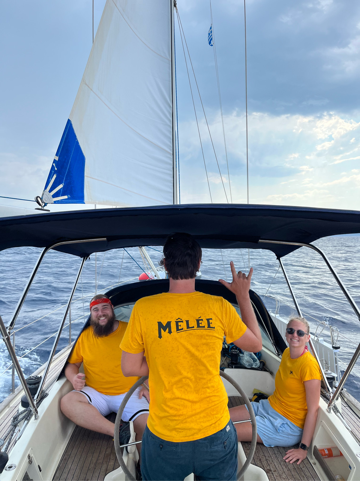 Nach insgesamt 47 Seemeilen brechen wir braungebrannt und mit einem Crewshirt mehr in der Tasche wieder Richtung Heimat auf. Unseren zwei gastfreundlichen Lieblingssegelyachtbesitzern wünschen wir eine strapazenfreie Weiterreise nach Sizilien und hoffen noch auf viele aufregende gemeinsame Stunden an Deck der Mêlée.