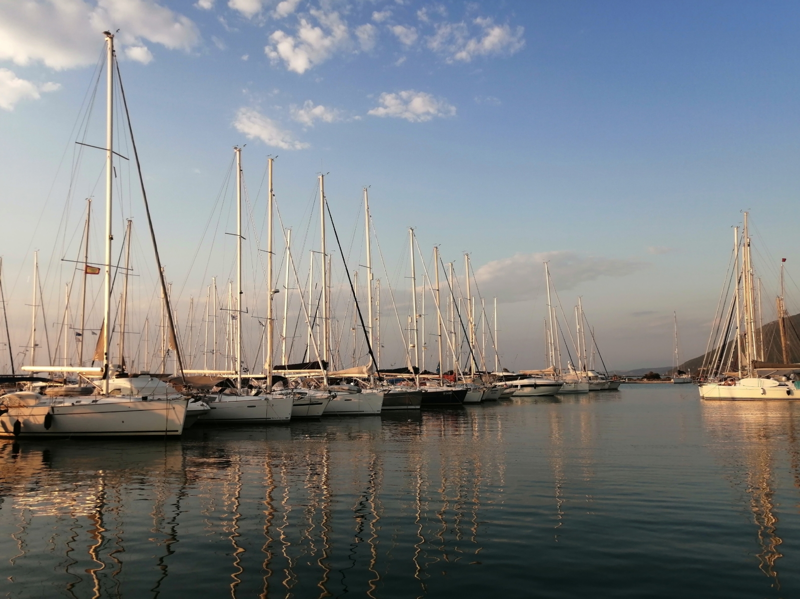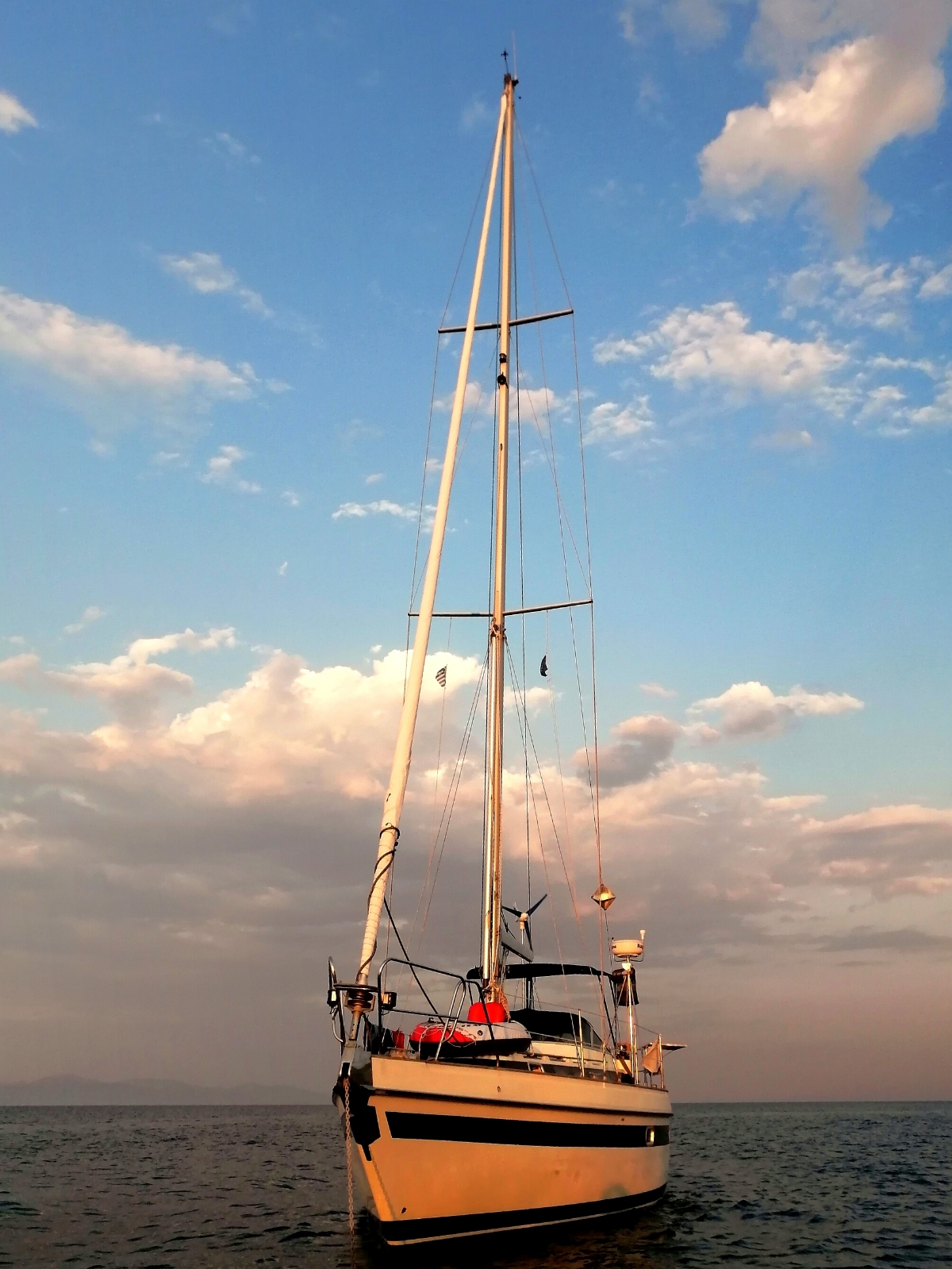 Sehr zeitig am Samstag in der Früh fliegen wir nach Griechenland und stehen bereits um 8:30 am Steg der Marina Preveza – bereit für die Abfahrt…. die dann doch erst am Sonntag ansteht. So verbringen wir den Tag in der Marina, wo wir uns sogleich dem ruhigen griechischen Lebensstil anpassen, dreimal im Kaffeehaus einkehren, versuchen in der Hitze unseren Schlaf aufzuholen und ansonsten nicht viel tun, außer Bernhard und Pia bei ihren Bootsarbeiten im Weg herumzustehen bzw. zu liegen. Am Abend geht es dann doch noch ein paar Schritte weiter in eine griechische Taverne, in der uns zu unserem Erstaunen für Griechenland untypische rennende Kellner köstliches Essen an den Tisch servieren.