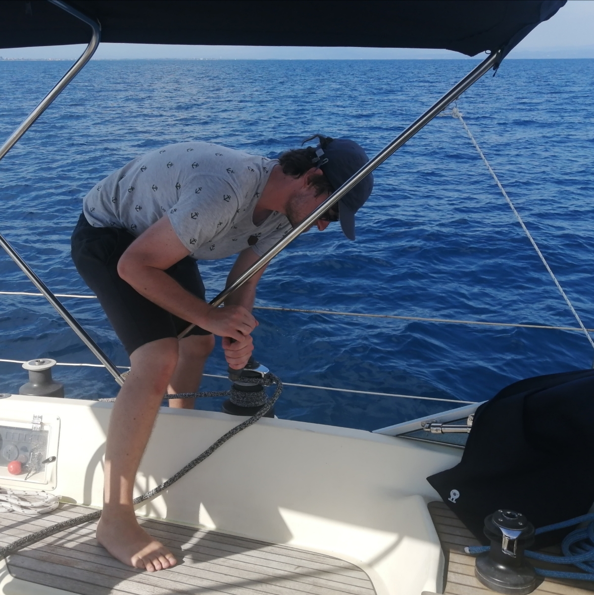 Erfolgreicher Tausch des Genuafalls Aber zurück zu unserer derzeitigen Lage. Morgen sollen die letzten Arbeiten erledigt werden. Es ist heiß. Schritt für Schritt kriegen wir das Riesenchaos am Schiff in den Griff. Die Wasserpumpe ist kaputt. Es bleibt spannend. Und heiß.