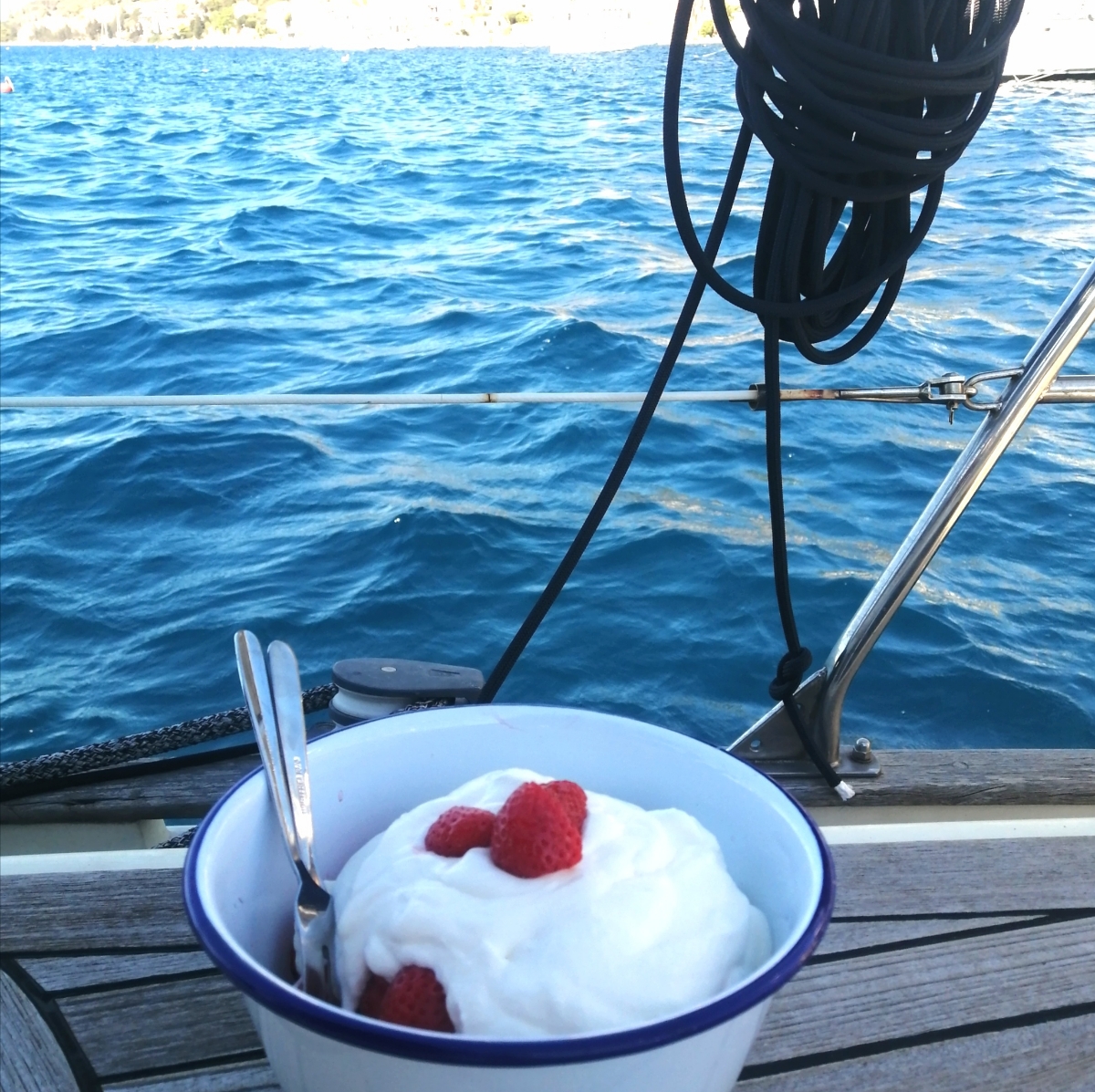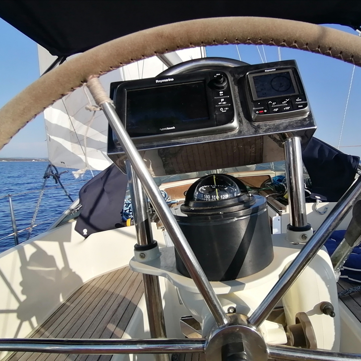 Wir lernen unser Boot kennen. Ein Beispiel: Als wir im Cockpit mit dem funktionslosen Schalter eines ehemaligen Nebelhorns spielen, bemerken wir, dass wir nur geglaubt haben, dass dies der funktionslose Schalter eines ehemaligen Nebelhorns ist. Viel mehr ist es ein voll funktionstüchtiger und ausgesprochen praktischer Bedienschalter für den Anker – über ein Jahr nach dem Kauf erleben wir immer wieder Überraschungen.
