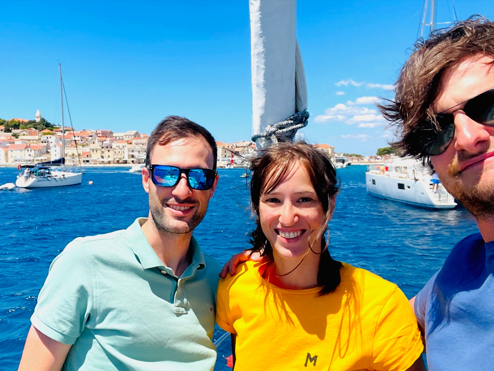 Als viertes Crewmitglied dürfen wir in Primošten Thomas an Bord begrüßen. Nach einem gemeinsamen Dinner am Sonntagabend (Ćevapi – wie der Kroate sagt) geht es am Montag bei guten Segelbedingungen nach Trogir. Ein Muss für Segeltouristen in der Gegend und doch hat Pia es noch nie hingeschafft – höchste Zeit also. Die als Zwischenstopp auserkorene Blue Lagoon (die schönste von allen?) erweist sich als überfüllt mit Ausflugsbooten. Zudem sehr windig und somit nicht sehr gemütlich.